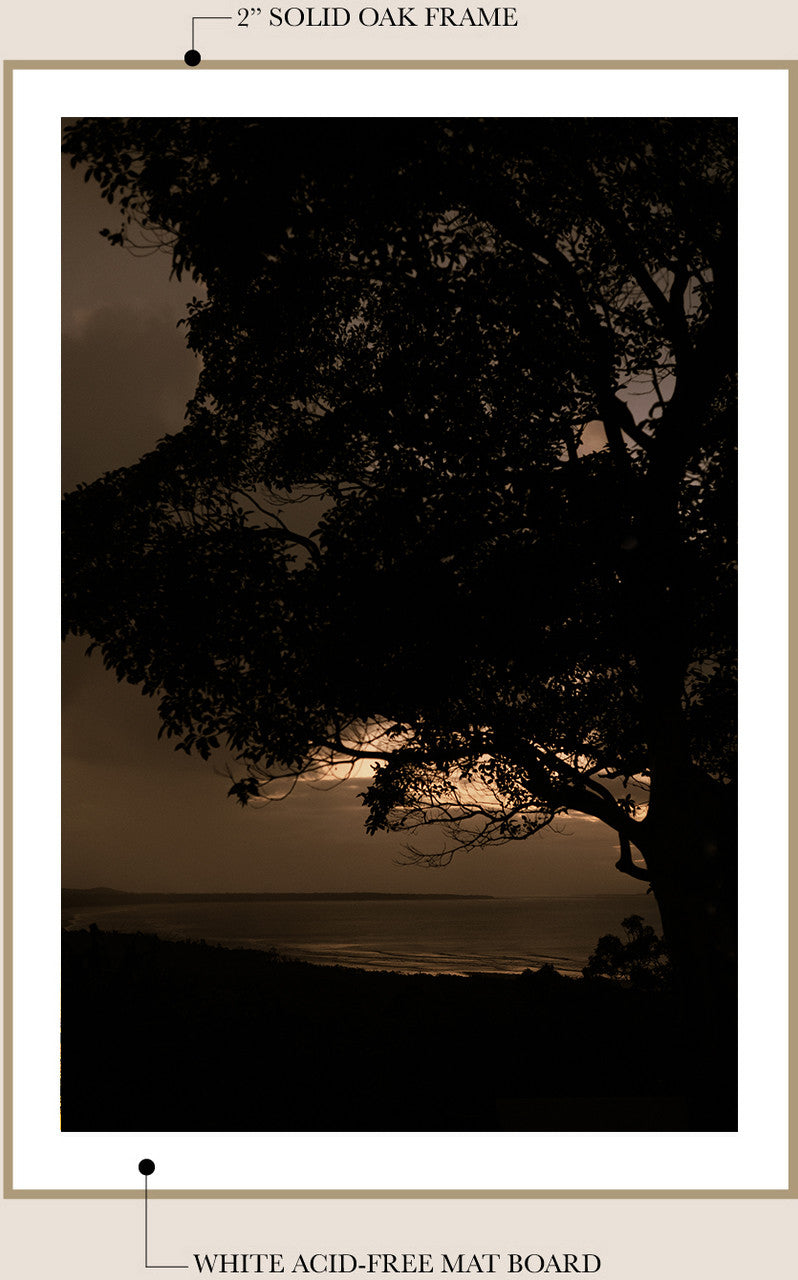 I work with a local professional framer to finish your fine art print in my signature framing style - unstained Tasmanian Oak and a traditional mat board*. The frame is finished with natural beeswax for a beautiful matte look and wood preservation.