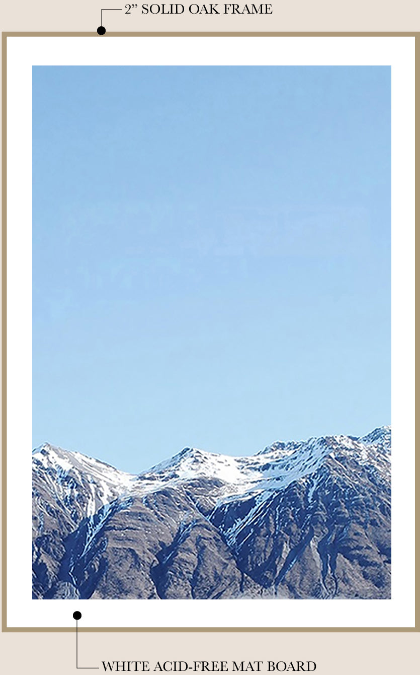 I work with a local professional framer to finish your fine art print in my signature framing style - unstained Tasmanian Oak and a traditional mat board*. The frame is finished with natural beeswax for a beautiful matte look and wood preservation.