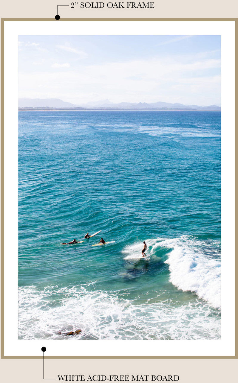 I work with a local professional framer to finish your fine art print in my signature framing style - unstained Tasmanian Oak and a traditional mat board*. The frame is finished with natural beeswax for a beautiful matte look and wood preservation.