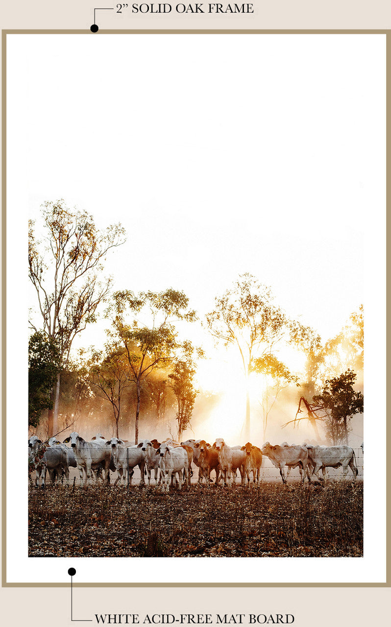 I work with a local professional framer to finish your fine art print in my signature framing style - unstained Tasmanian Oak and a traditional mat board*. The frame is finished with natural beeswax for a beautiful matte look and wood preservation.