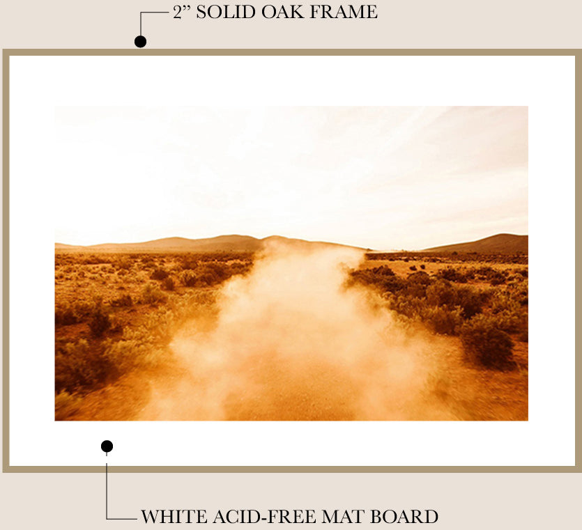 I work with a local professional framer to finish your fine art print in my signature framing style - unstained Tasmanian Oak and a traditional mat board*. The frame is finished with natural beeswax for a beautiful matte look and wood preservation.