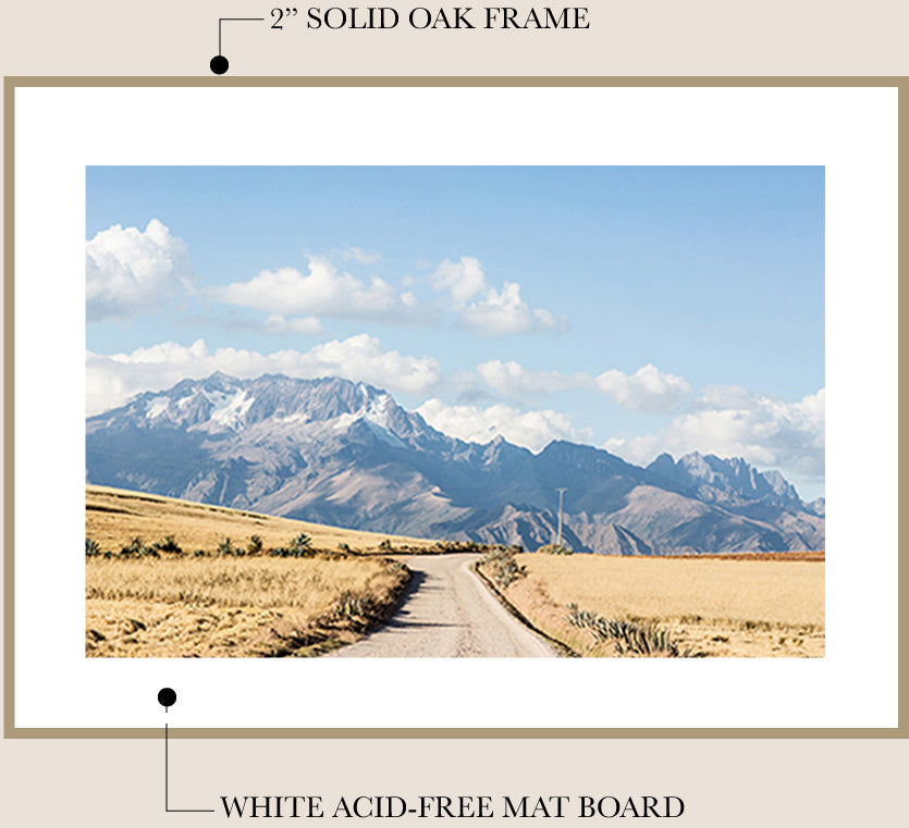 I work with a local professional framer to finish your fine art print in my signature framing style - unstained Tasmanian Oak and a traditional mat board*. The frame is finished with natural beeswax for a beautiful matte look and wood preservation.