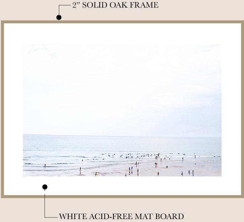 I work with a local professional framer to finish your fine art print in my signature framing style - unstained Tasmanian Oak and a traditional mat board*. The frame is finished with natural beeswax for a beautiful matte look and wood preservation.