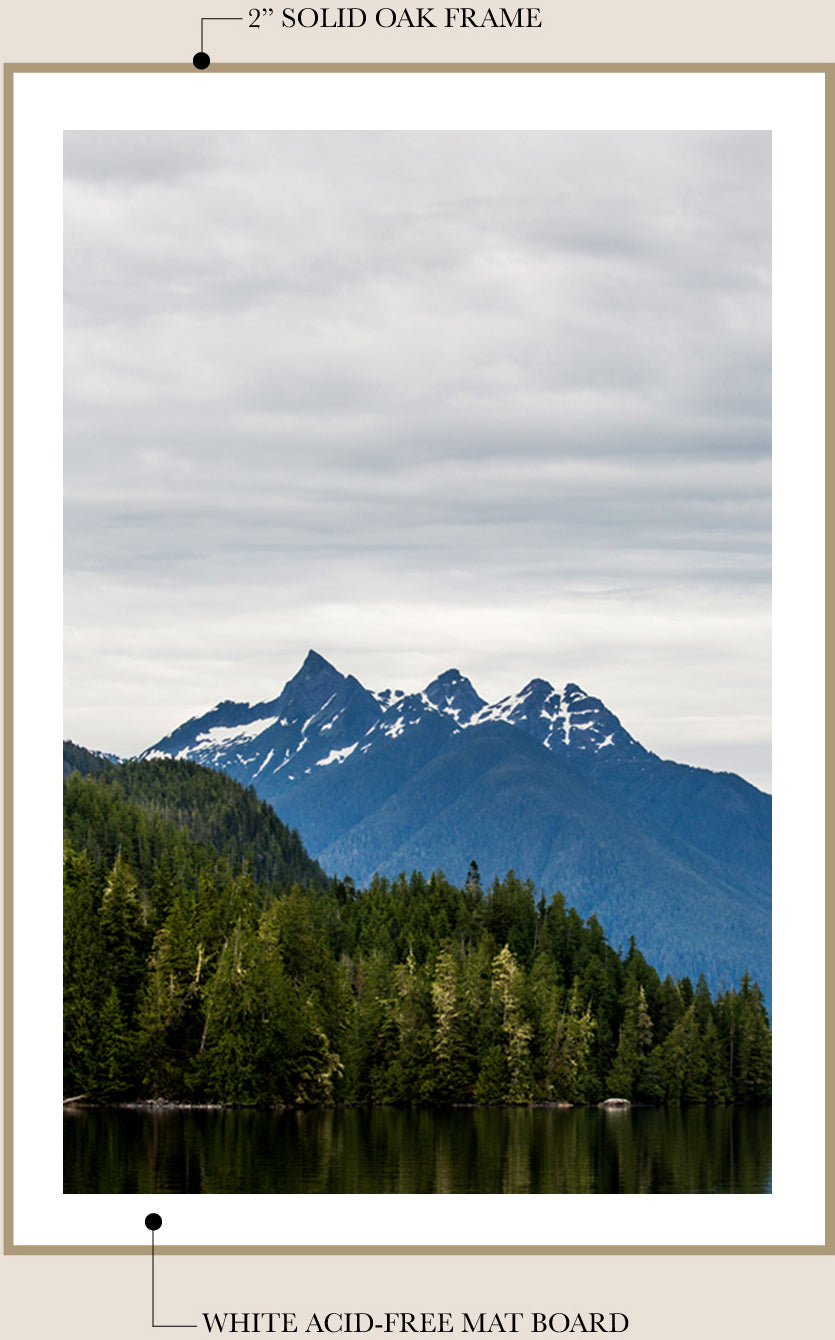 I work with a local professional framer to finish your fine art print in my signature framing style - unstained Tasmanian Oak and a traditional mat board*. The frame is finished with natural beeswax for a beautiful matte look and wood preservation.