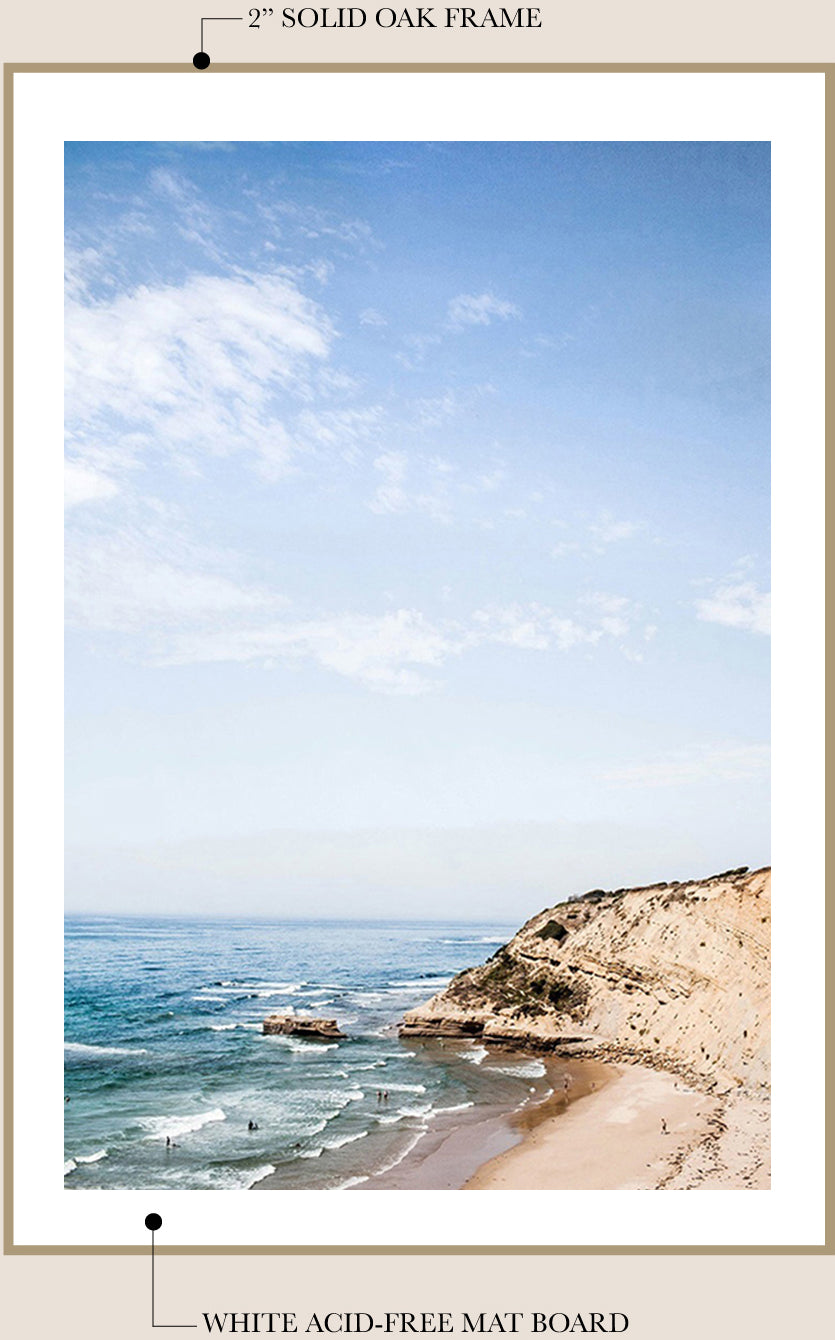 I work with a local professional framer to finish your fine art print in my signature framing style - unstained Tasmanian Oak and a traditional mat board*. The frame is finished with natural beeswax for a beautiful matte look and wood preservation.