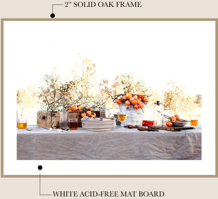 I work with a local professional framer to finish your fine art print in my signature framing style - unstained Tasmanian Oak and a traditional mat board*. The frame is finished with natural beeswax for a beautiful matte look and wood preservation.