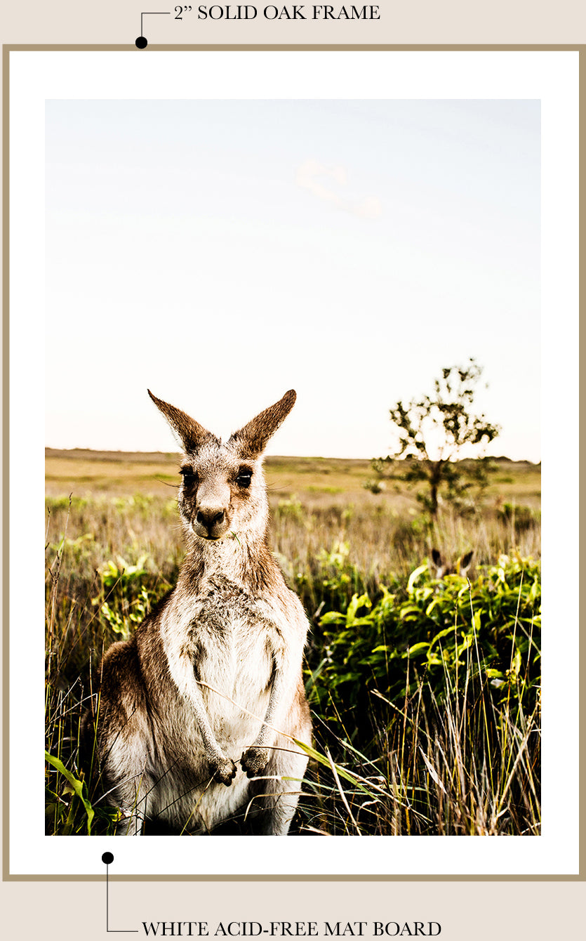 I work with a local professional framer to finish your fine art print in my signature framing style - unstained Tasmanian Oak and a traditional mat board*. The frame is finished with natural beeswax for a beautiful matte look and wood preservation.