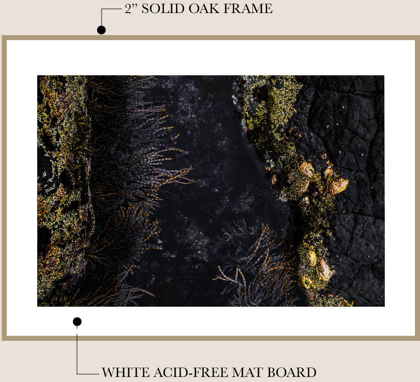 I work with a local professional framer to finish your fine art print in my signature framing style - unstained Tasmanian Oak and a traditional mat board*. The frame is finished with natural beeswax for a beautiful matte look and wood preservation.