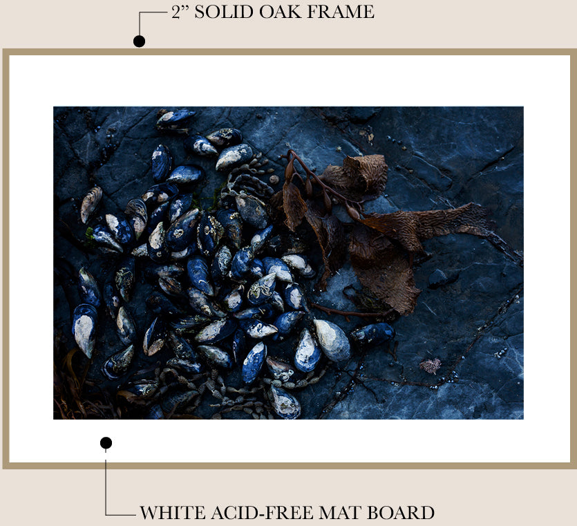 I work with a local professional framer to finish your fine art print in my signature framing style - unstained Tasmanian Oak and a traditional mat board*. The frame is finished with natural beeswax for a beautiful matte look and wood preservation.