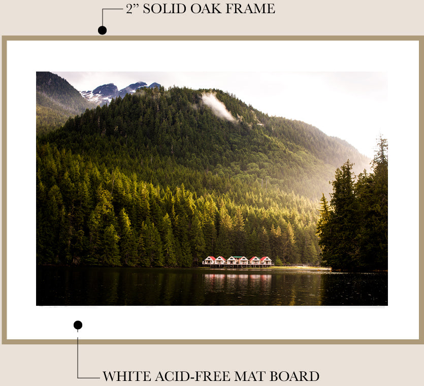 I work with a local professional framer to finish your fine art print in my signature framing style - unstained Tasmanian Oak and a traditional mat board*. The frame is finished with natural beeswax for a beautiful matte look and wood preservation.