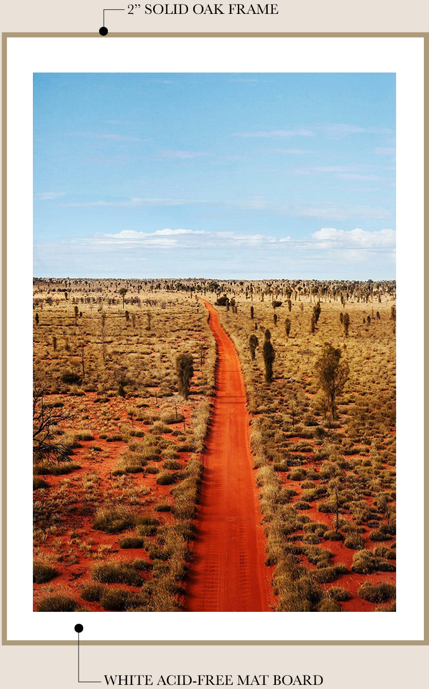 I work with a local professional framer to finish your fine art print in my signature framing style - unstained Tasmanian Oak and a traditional mat board*. The frame is finished with natural beeswax for a beautiful matte look and wood preservation.