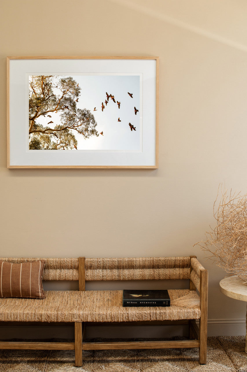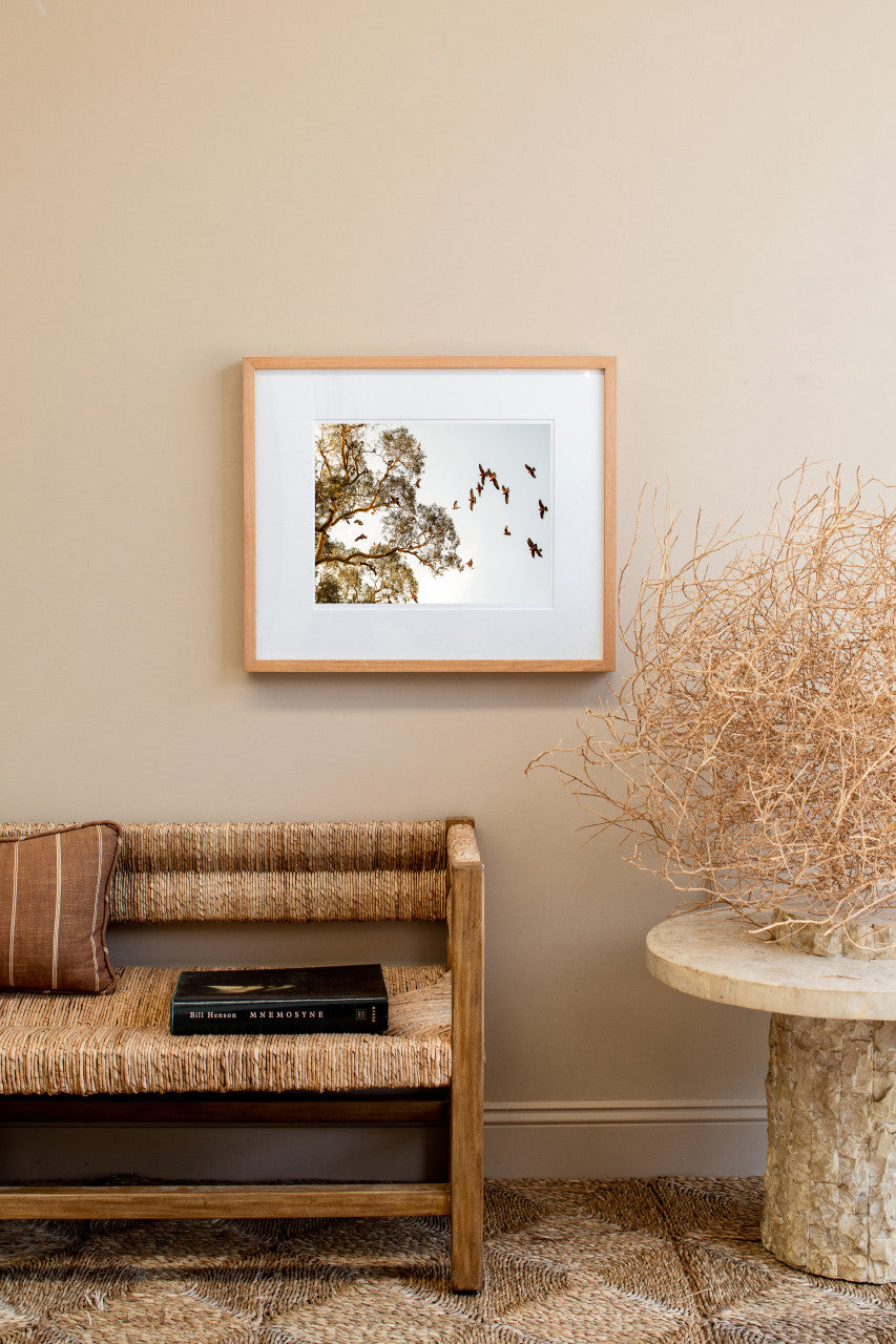 I work with a local professional framer to finish your fine art print in my signature framing style - unstained Tasmanian Oak and a traditional mat board*. The frame is finished with natural beeswax for a beautiful matte look and wood preservation.