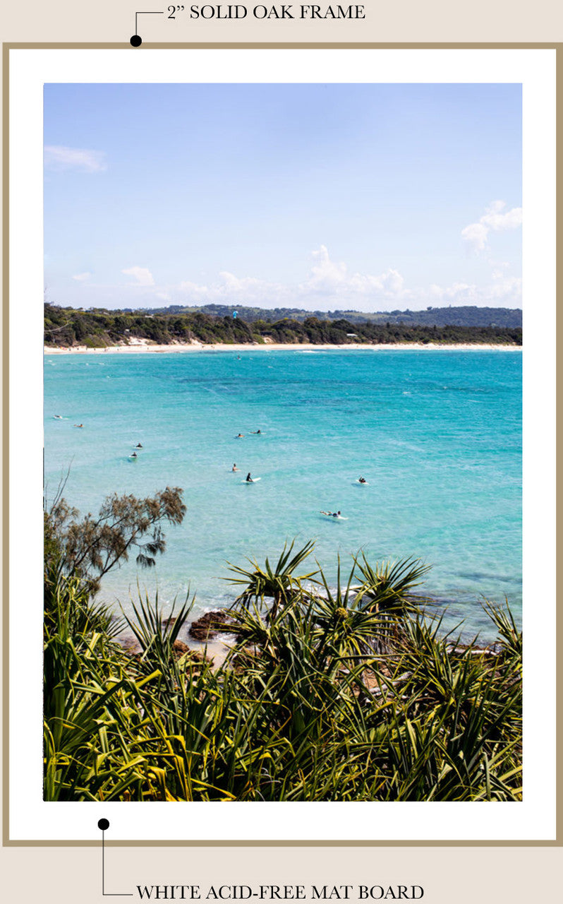 I work with a local professional framer to finish your fine art print in my signature framing style - unstained Tasmanian Oak and a traditional mat board*. The frame is finished with natural beeswax for a beautiful matte look and wood preservation.