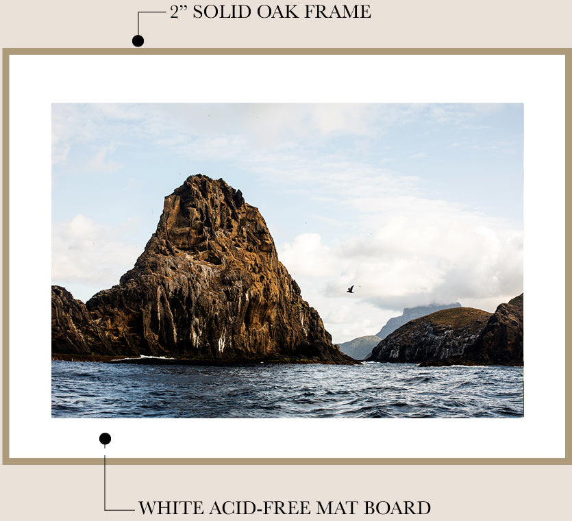 I work with a local professional framer to finish your fine art print in my signature framing style - unstained Tasmanian Oak and a traditional mat board*. The frame is finished with natural beeswax for a beautiful matte look and wood preservation.