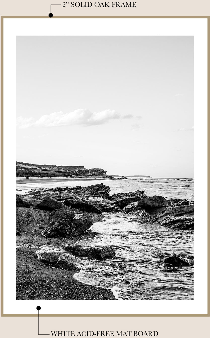 I work with a local professional framer to finish your fine art print in my signature framing style - unstained Tasmanian Oak and a traditional mat board*. The frame is finished with natural beeswax for a beautiful matte look and wood preservation.