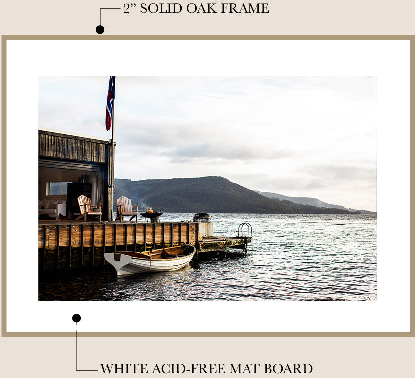 I work with a local professional framer to finish your fine art print in my signature framing style - unstained Tasmanian Oak and a traditional mat board*. The frame is finished with natural beeswax for a beautiful matte look and wood preservation.
