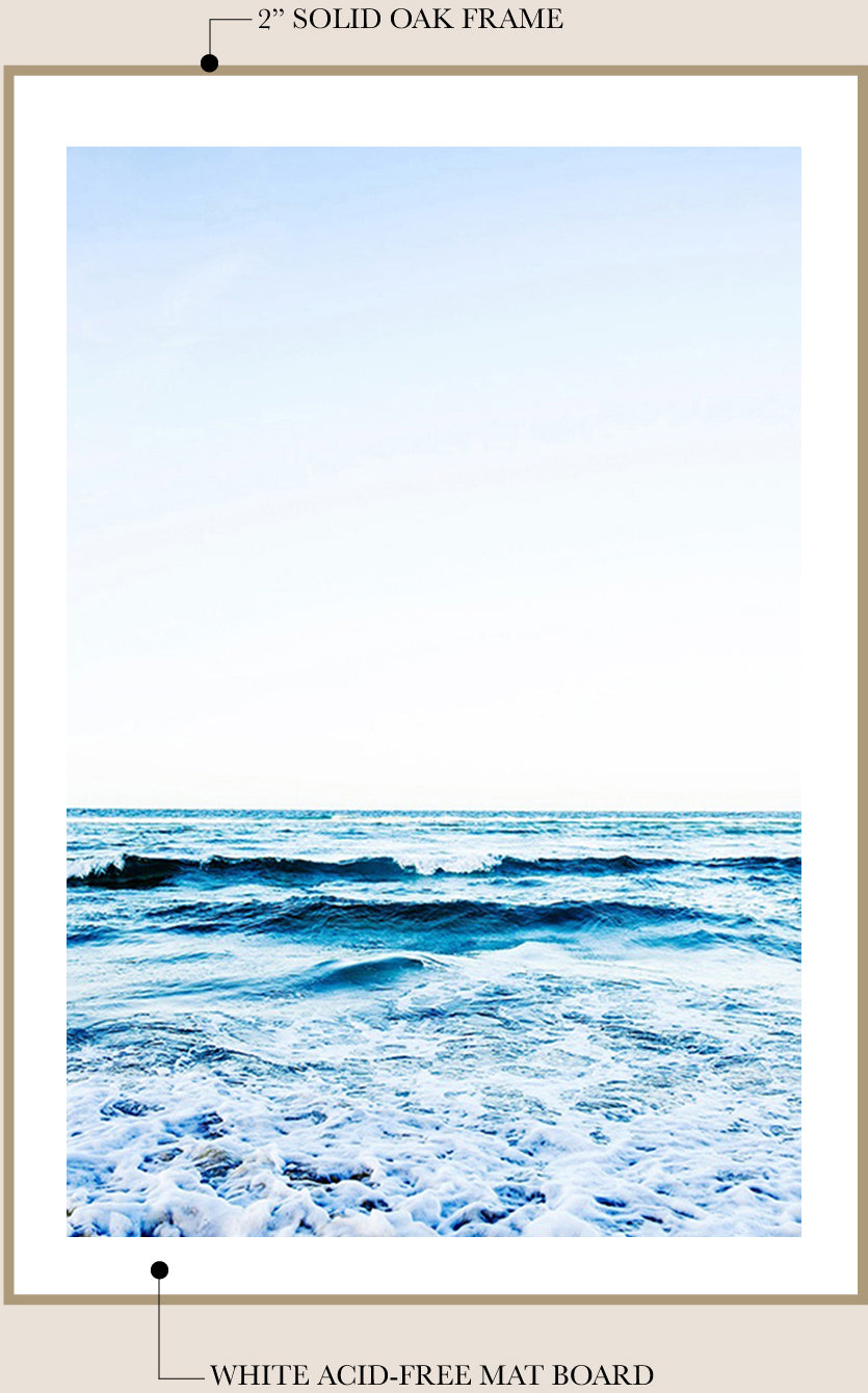 I work with a local professional framer to finish your fine art print in my signature framing style - unstained Tasmanian Oak and a traditional mat board*. The frame is finished with natural beeswax for a beautiful matte look and wood preservation.