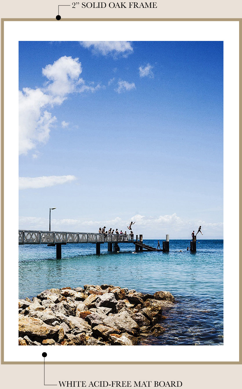 I work with a local professional framer to finish your fine art print in my signature framing style - unstained Tasmanian Oak and a traditional mat board*. The frame is finished with natural beeswax for a beautiful matte look and wood preservation.