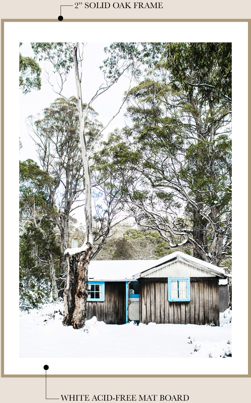 I work with a local professional framer to finish your fine art print in my signature framing style - unstained Tasmanian Oak and a traditional mat board*. The frame is finished with natural beeswax for a beautiful matte look and wood preservation.