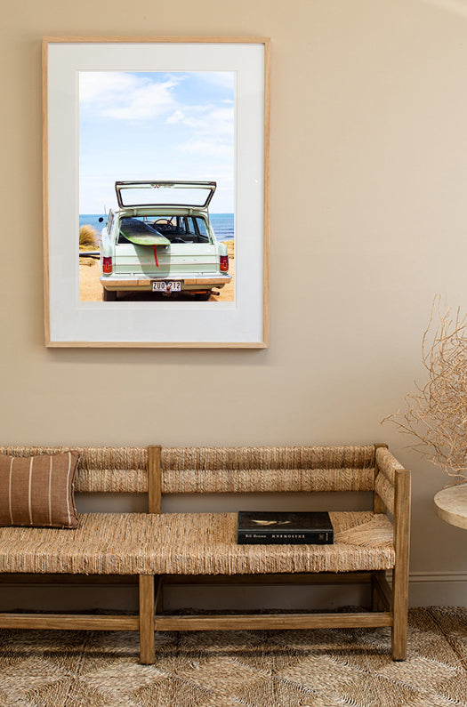 I work with a local professional framer to finish your fine art print in my signature framing style - unstained Tasmanian Oak and a traditional mat board*. The frame is finished with natural beeswax for a beautiful matte look and wood preservation.