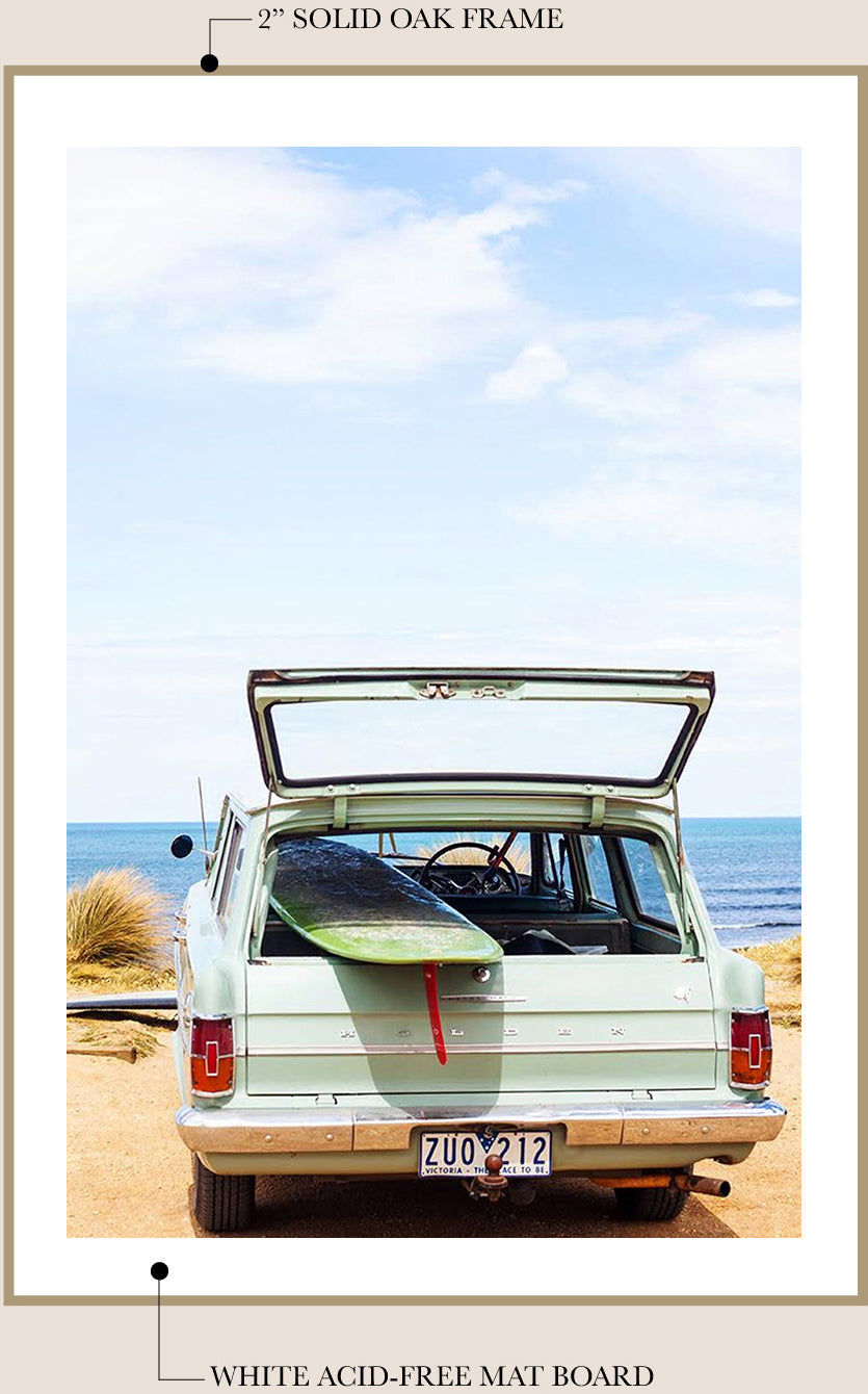 I work with a local professional framer to finish your fine art print in my signature framing style - unstained Tasmanian Oak and a traditional mat board*. The frame is finished with natural beeswax for a beautiful matte look and wood preservation.