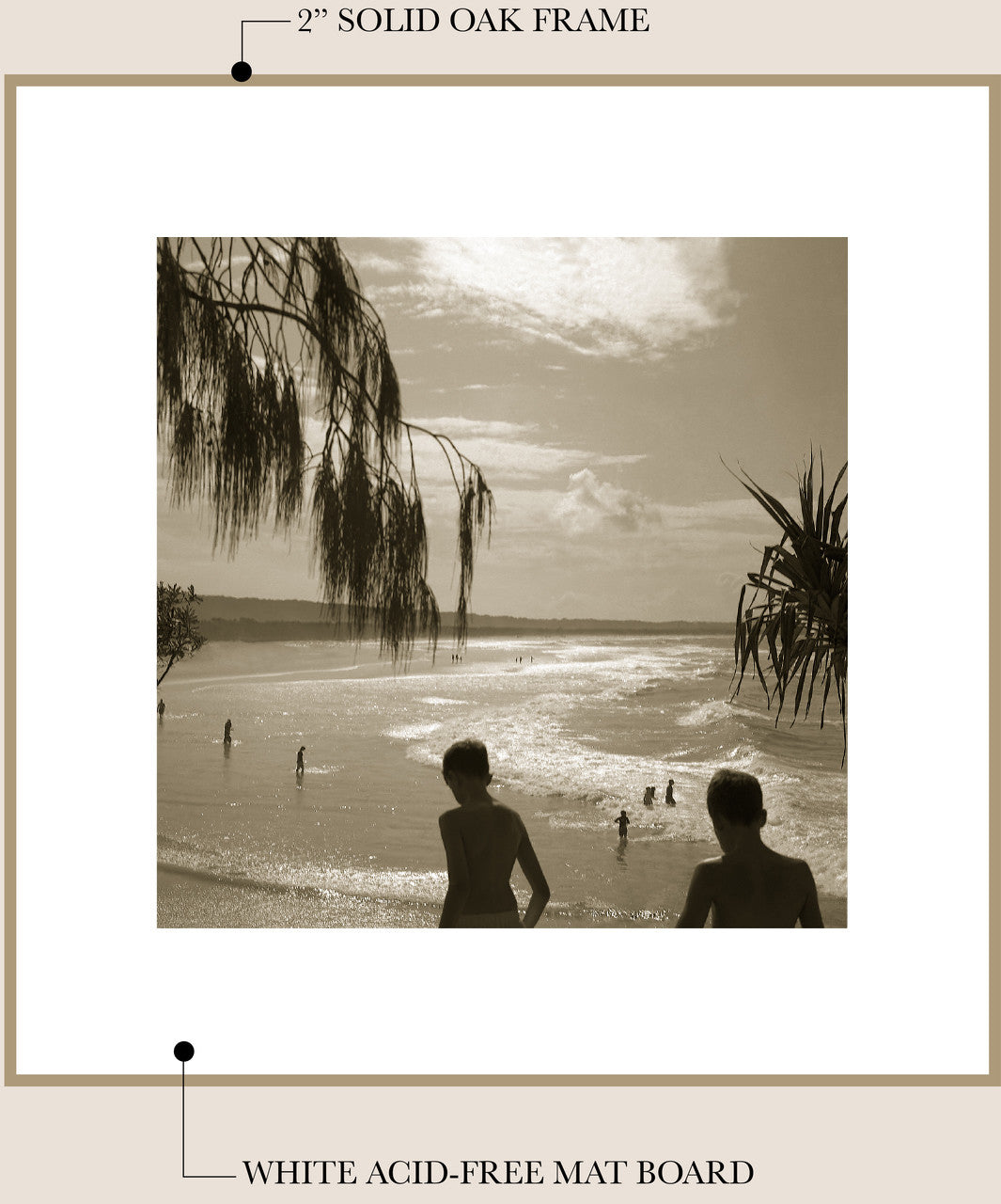 I work with a local professional framer to finish your fine art print in my signature framing style - unstained Tasmanian Oak and a traditional mat board*. The frame is finished with natural beeswax for a beautiful matte look and wood preservation.
