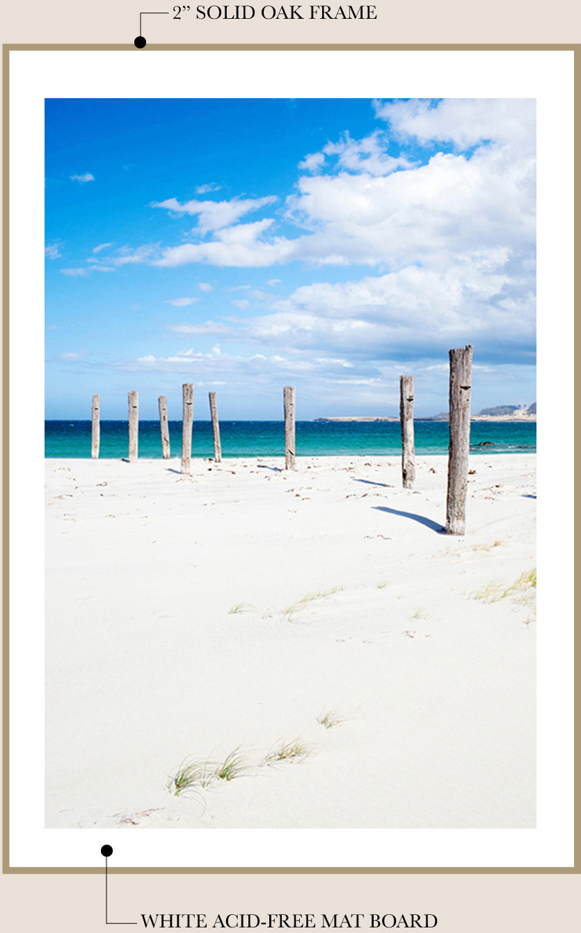 I work with a local professional framer to finish your fine art print in my signature framing style - unstained Tasmanian Oak and a traditional mat board*. The frame is finished with natural beeswax for a beautiful matte look and wood preservation.