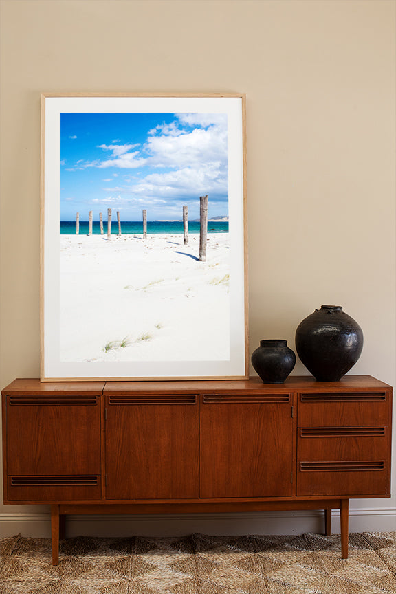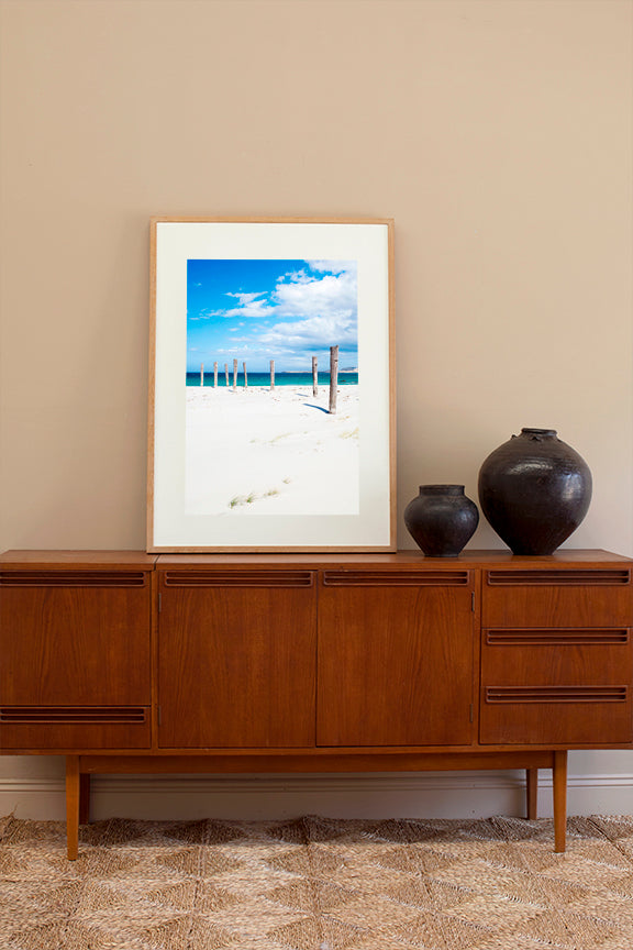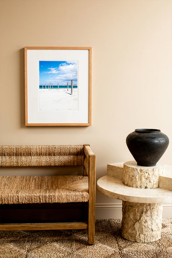 I work with a local professional framer to finish your fine art print in my signature framing style - unstained Tasmanian Oak and a traditional mat board*. The frame is finished with natural beeswax for a beautiful matte look and wood preservation.