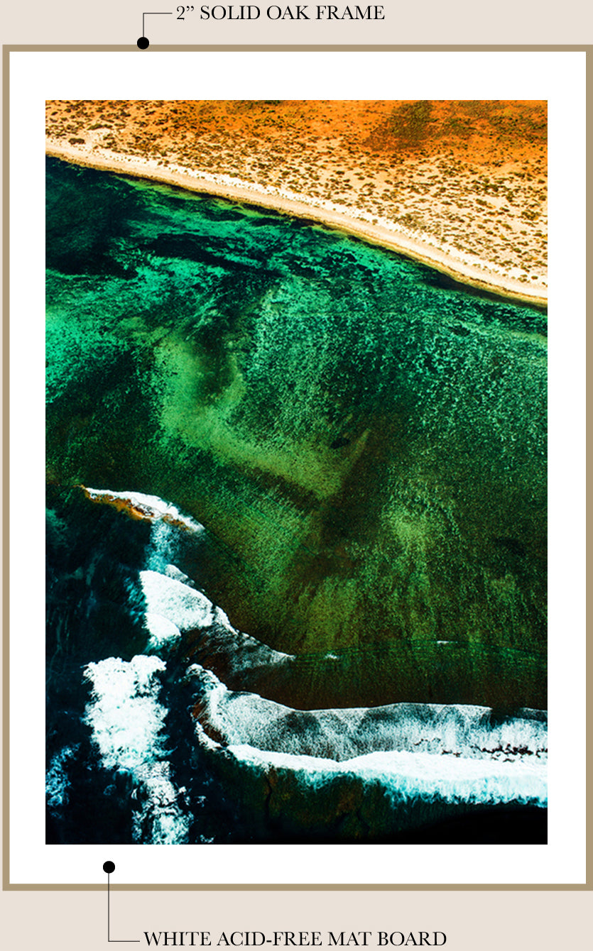 I work with a local professional framer to finish your fine art print in my signature framing style - unstained Tasmanian Oak and a traditional mat board*. The frame is finished with natural beeswax for a beautiful matte look and wood preservation.