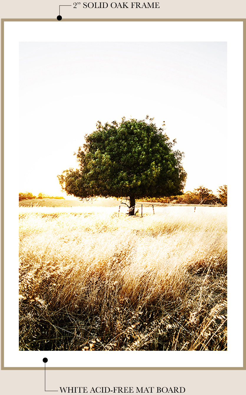 I work with a local professional framer to finish your fine art print in my signature framing style - unstained Tasmanian Oak and a traditional mat board*. The frame is finished with natural beeswax for a beautiful matte look and wood preservation.