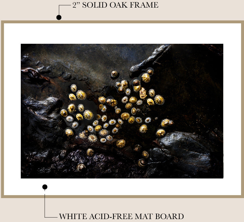 I work with a local professional framer to finish your fine art print in my signature framing style - unstained Tasmanian Oak and a traditional mat board*. The frame is finished with natural beeswax for a beautiful matte look and wood preservation.