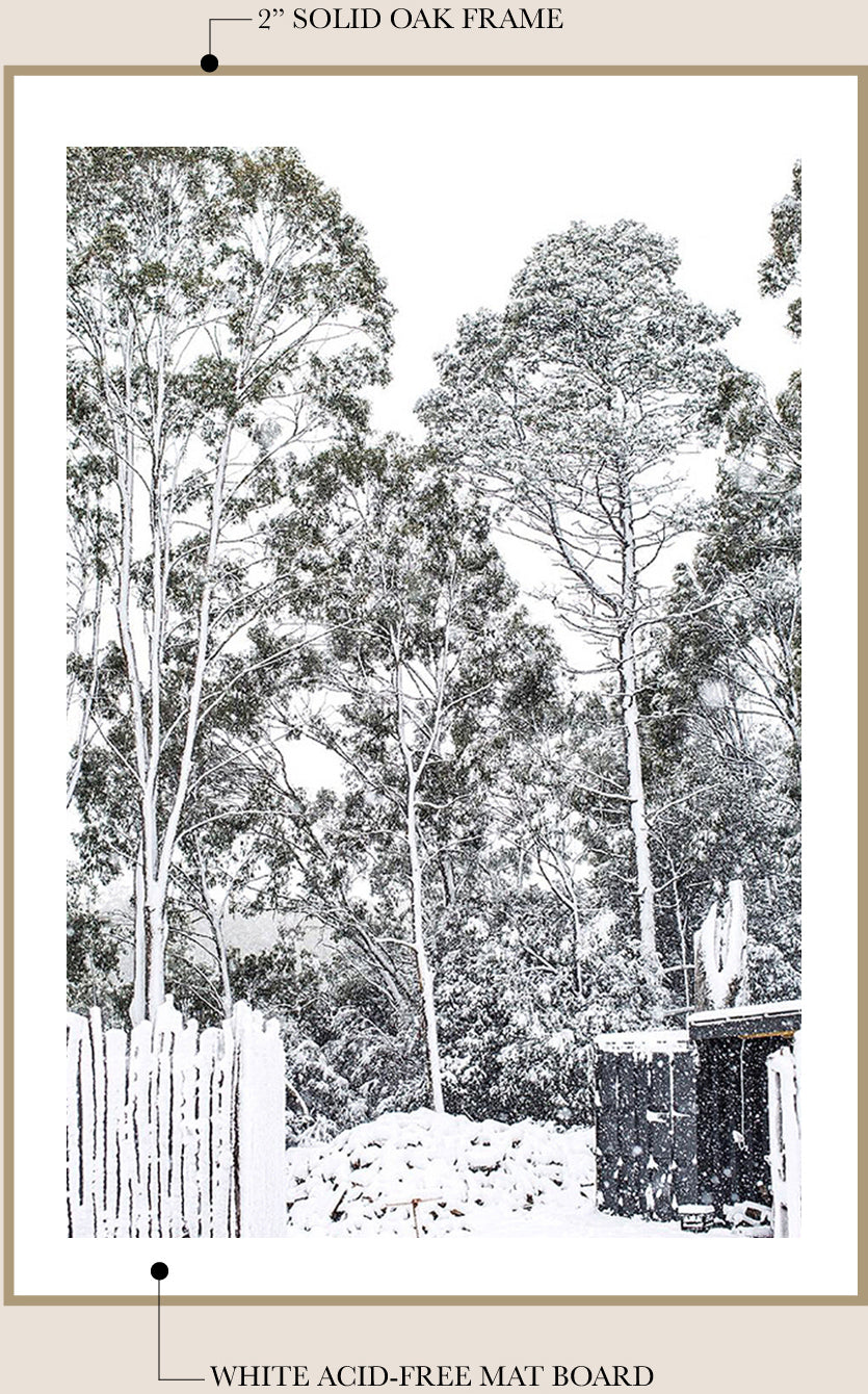I work with a local professional framer to finish your fine art print in my signature framing style - unstained Tasmanian Oak and a traditional mat board*. The frame is finished with natural beeswax for a beautiful matte look and wood preservation.